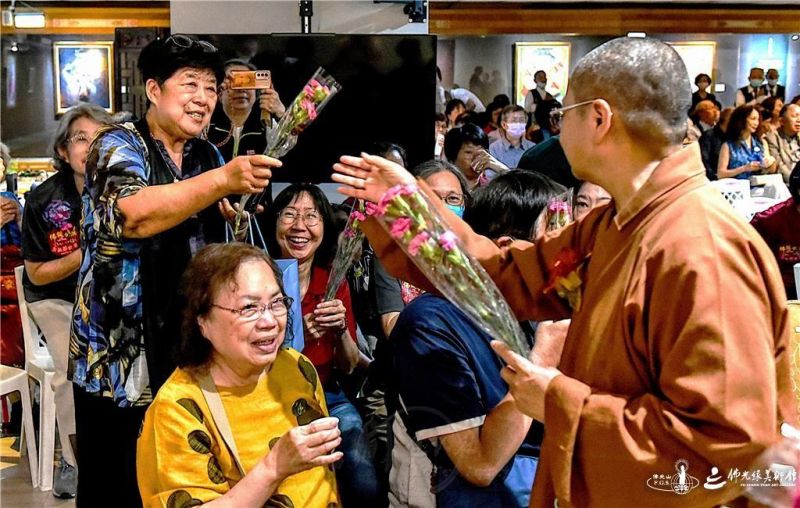座談會圓滿,滿謙法師為現場每位來賓獻上一朵康乃馨,祝福大眾佛誕節暨母親節快樂,幸福安樂,世界和平,國泰民安,社會和諧。