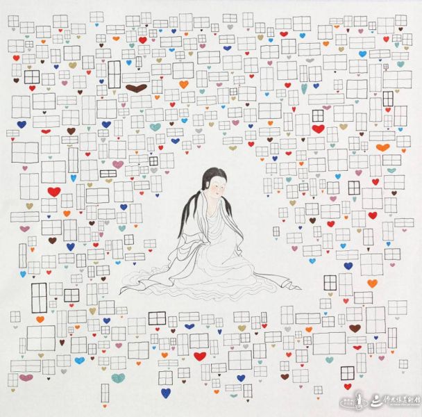 此次「禪與纏」展覽的靈感,源於閱讀中的停頓、日常生活的觸動,以及對現代社會與人際關係的觀察與省思。多樣的題材,不僅釋放了畫家的思緒,也呈現她與筆下菩薩靜靜共享的時光。