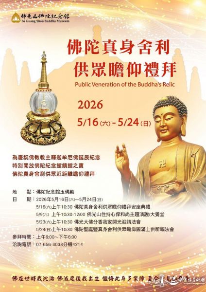 為慶祝佛教教主釋迦牟尼佛誕辰紀念,特別開放佛陀紀念館鎮館之寶─佛陀真身舍利供眾近距離瞻仰禮拜。
