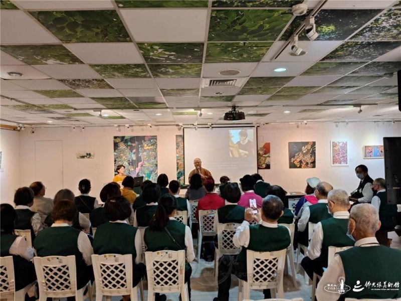 佛光緣美術館總部、佛光山台北道場主辦,佛光緣美術館台北館承辦,2026年春節藝術特展主題:「和諧共生.馬到成功」教育推廣活動第二場,2月28日於台北道場10樓舉行藝術專題講座,由展出藝術家陳盈如就其出展作品賞析「門神也天馬行空」,吸引藝術愛好者及導覽義工近50人參與。